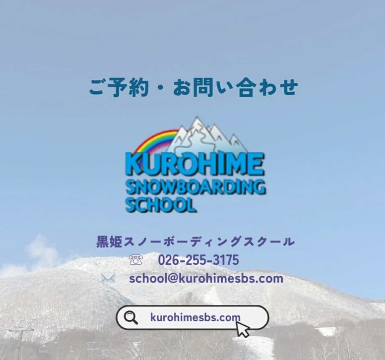 黒姫スノーボーディングスクールは信州 黒姫高原スノーパークで開校しています。黒姫高原スノーパークは100%天然雪の最高の雪質と初心者から上級者まで対応する多彩なゲレンデを有しています。