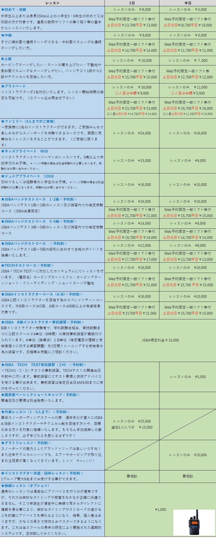 ★スクールは、すべてのコースに安全管理費¥500が含まれます。